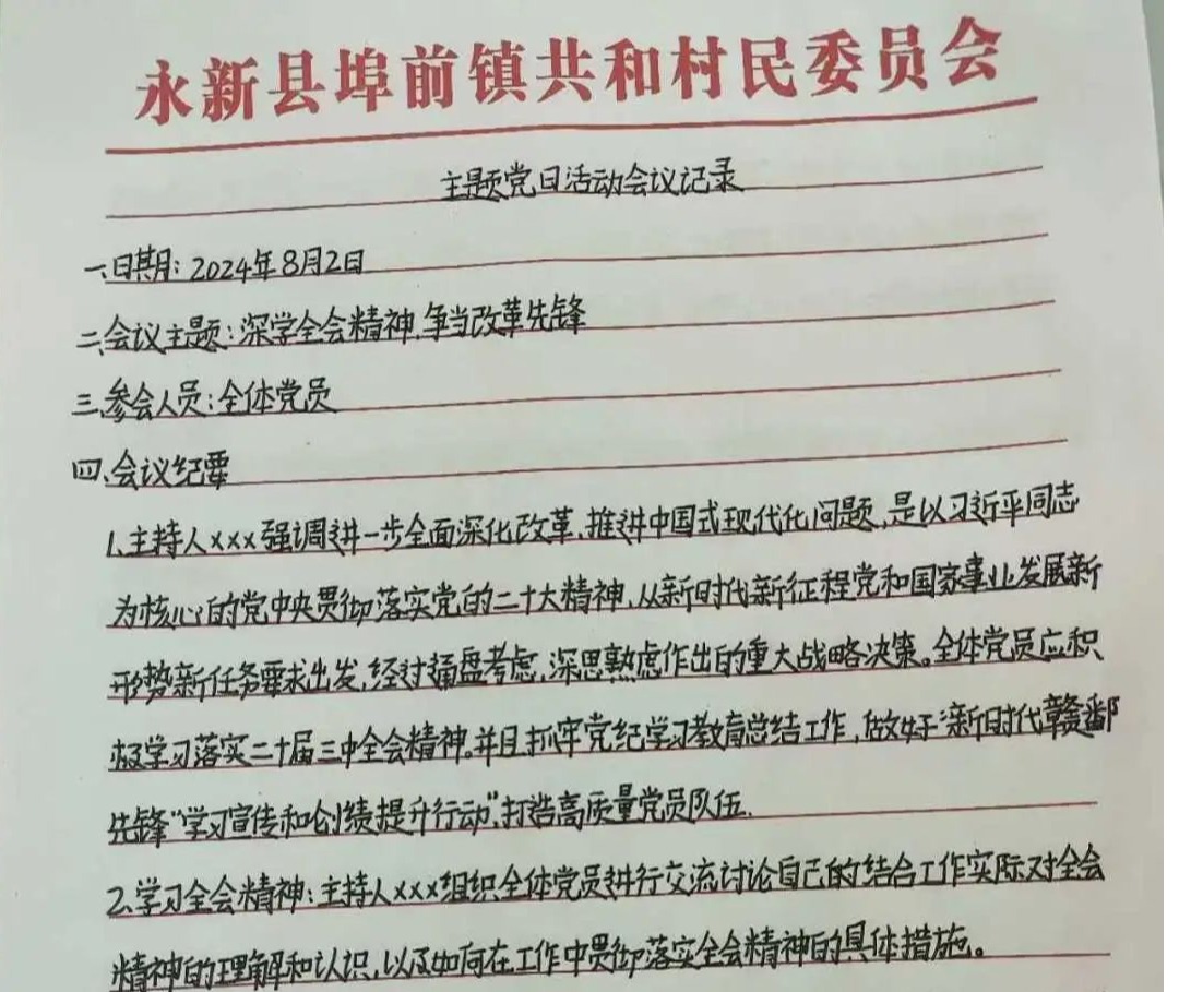 题党日活动:我很荣幸再会后为此次活动撰写会议记录。对于撰写会议报告,我没有一点经验,我甚至无从下手。因此,我认真询问相关工作人员方法。此次会议,我不仅知道如何写会议记录,我也了解到党的二十届三中全会精神是什么,以及如何弘扬并且把这个精神落实到日常生活中。